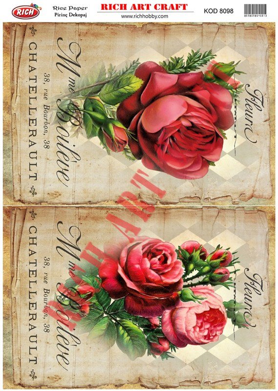 The designs that are printed on the special decoupage paper sheets are ideal to use in decoupage works. With Rich Magic Decoupage Glue, you can easily stick it to the surface you want and apply paints, relief pastes, foils, and varnishes on those. For other decoupage models, please visit our decoupage paper web pages.