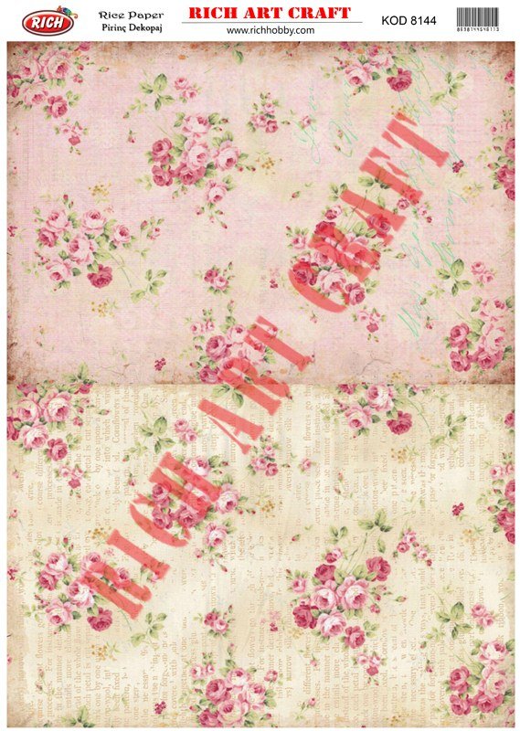 The designs that are printed on the special decoupage paper sheets are ideal to use in decoupage works. With Rich Magic Decoupage Glue, you can easily stick it to the surface you want and apply paints, relief pastes, foils, and varnishes on those. For other decoupage models, please visit our decoupage paper web pages.