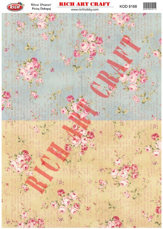 The designs that are printed on the special decoupage paper sheets are ideal to use in decoupage works. With Rich Magic Decoupage Glue, you can easily stick it to the surface you want and apply paints, relief pastes, foils, and varnishes on those. For other decoupage models, please visit our decoupage paper web pages.