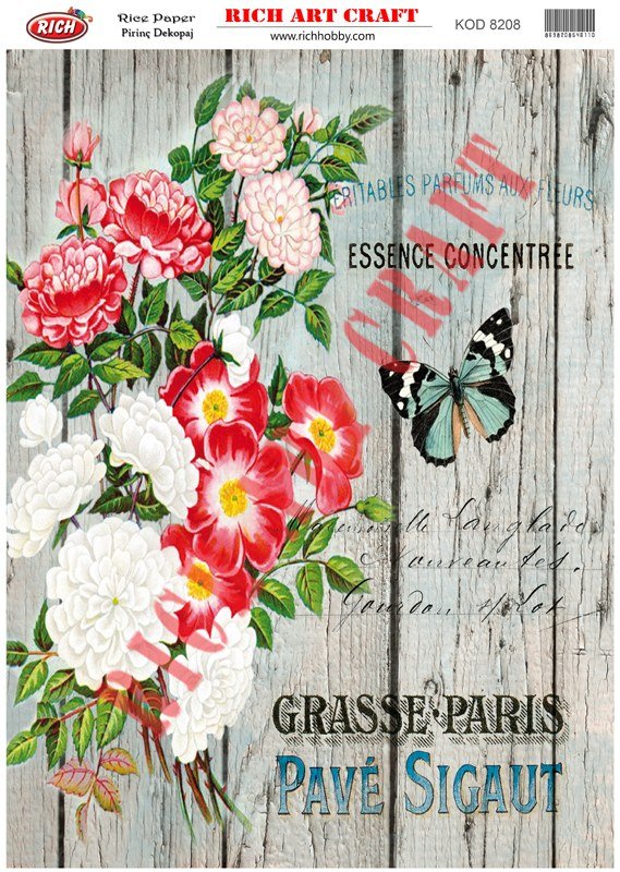 The designs that are printed on the special decoupage paper sheets are ideal to use in decoupage works. With Rich Magic Decoupage Glue, you can easily stick it to the surface you want and apply paints, relief pastes, foils, and varnishes on those. For other decoupage models, please visit our decoupage paper web pages.