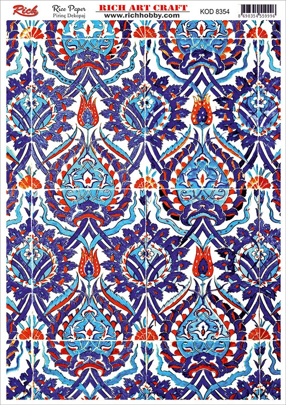 It is printed on textured and thin paper that made from rice straw and is used for decoupage works. With Rich Magic Decoupage Glue, you can easily sck it to the surface you want and apply painng, relief, foil and varnish on it. For other Rice paper designs, please visit our web page.