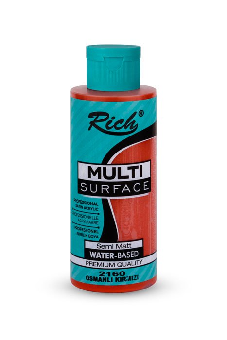 The Rich Multi-Surface series consist of water-based, odorless paints that can be applied to any surface for decorative purposes. They give a semi-matte appearance on the applied surface. The colors can be intermixed. They are used after dilution with water. The net appearance is achieved after an average of 3 coats depending on the surface. One should wait 24 hours after the 1st coat is painted on the surface. A wait period of 12 hours is sufficient between the other coats. Due to their dense composition, they can be applied both with rollers and brushes. When renovation your furniture, there is no need for sandpaper, surface preparation before the application, or applying another product. Along with its rich color range, it is available in 4 different volumes; namely 120cc/500cc/1250cc/2500cc.