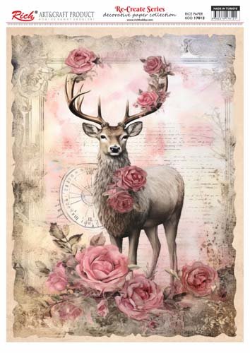 RE-CREATE SERIES RICE PAPER NEW YEAR SERIES are printed on textured and thin paper that made from rice straw and is used for decoupage works. With Rich Magic Decoupage Glue, you can easily sck it to the surface you want and apply painng, relief, foil and varnish on it. For other Rice paper designs, please visit our web page.