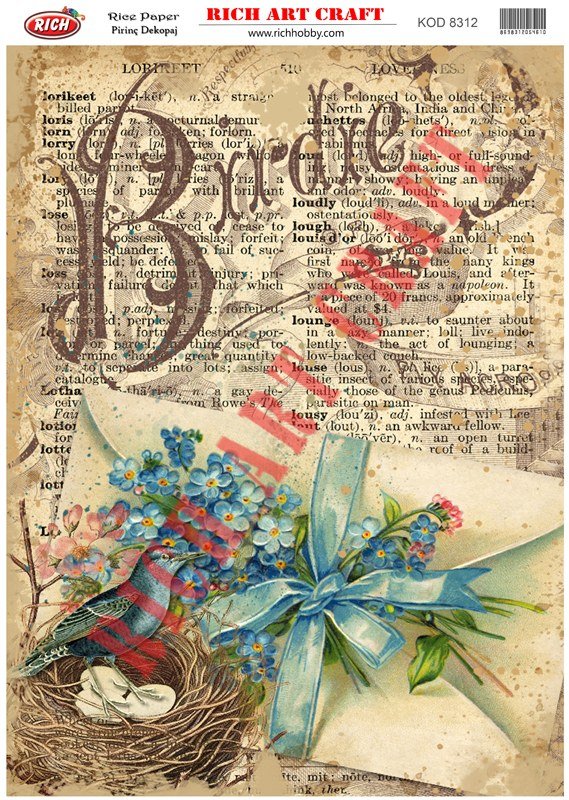It is printed on textured and thin paper that made from rice straw and is used for decoupage works. With Rich Magic Decoupage Glue, you can easily sck it to the surface you want and apply painng, relief, foil and varnish on it. For other Rice paper designs, please visit our web page.