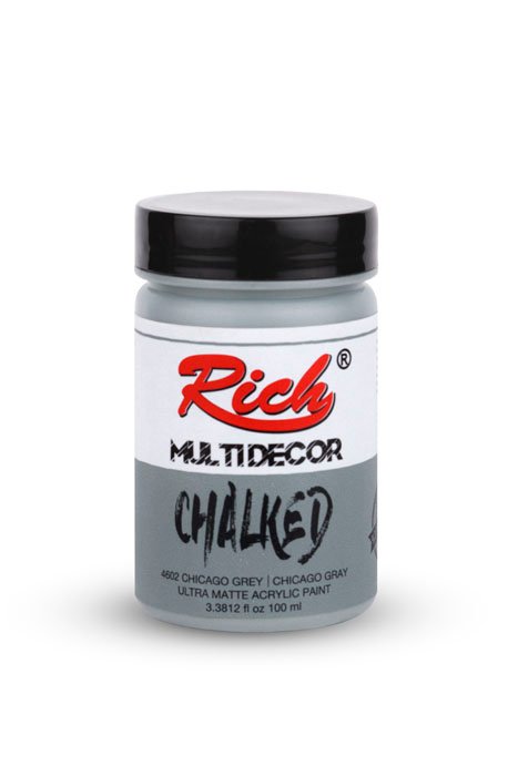 Rich Multi-Decor Chalked series are water-based, odorless paints that can be applied on every surface for decorative purposes. They give a silky, matte appearance on the applied surface. It is applied directly without dilution. It should be shaken for 1 min. before each use. The colors can be intermixed. Due to its high-pigment composition, it ensures a clarity in 2-3 coats at an average. It leaves no brush marks behind. It is suitable for application with rollers. When renovating your furniture with Multi-Decor Chalked paints, there is no need for sandpaper, surface preparation before the application, or applying another product. Along with its rich color range, it is available in 4 different volumes; namely 100cc/250cc/500cc/1250cc.