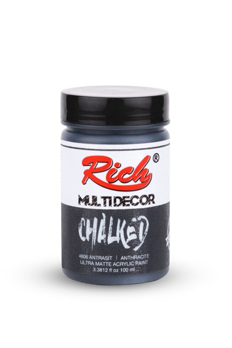 Rich Multi-Decor Chalked series are water-based, odorless paints that can be applied on every surface for decorative purposes. They give a silky, matte appearance on the applied surface. It is applied directly without dilution. It should be shaken for 1 min. before each use. The colors can be intermixed. Due to its high-pigment composition, it ensures a clarity in 2-3 coats at an average. It leaves no brush marks behind. It is suitable for application with rollers. When renovating your furniture with Multi-Decor Chalked paints, there is no need for sandpaper, surface preparation before the application, or applying another product. Along with its rich color range, it is available in 4 different volumes; namely 100cc/250cc/500cc/1250cc.