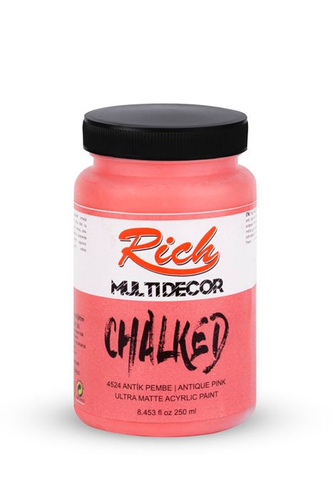 Rich Multi-Decor Chalked series are water-based, odorless paints that can be applied on every surface for decorative purposes. They give a silky, matte appearance on the applied surface. It is applied directly without dilution. It should be shaken for 1 min. before each use. The colors can be intermixed. Due to its high-pigment composition, it ensures a clarity in 2-3 coats at an average. It leaves no brush marks behind. It is suitable for application with rollers. When renovating your furniture with Multi-Decor Chalked paints, there is no need for sandpaper, surface preparation before the application, or applying another product. Along with its rich color range, it is available in 4 different volumes; namely 100cc/250cc/500cc/1250cc.