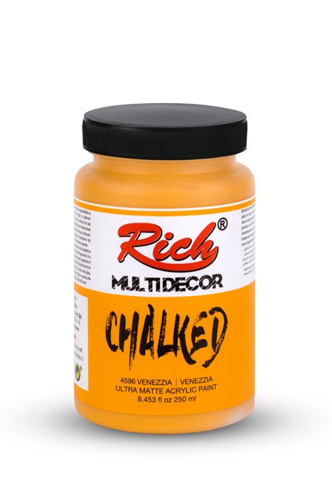 Rich Multi-Decor Chalked series are water-based, odorless paints that can be applied on every surface for decorative purposes. They give a silky, matte appearance on the applied surface. It is applied directly without dilution. It should be shaken for 1 min. before each use. The colors can be intermixed. Due to its high-pigment composition, it ensures a clarity in 2-3 coats at an average. It leaves no brush marks behind. It is suitable for application with rollers. When renovating your furniture with Multi-Decor Chalked paints, there is no need for sandpaper, surface preparation before the application, or applying another product. Along with its rich color range, it is available in 4 different volumes; namely 100cc/250cc/500cc/1250cc.