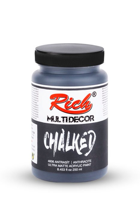 Rich Multi-Decor Chalked series are water-based, odorless paints that can be applied on every surface for decorative purposes. They give a silky, matte appearance on the applied surface. It is applied directly without dilution. It should be shaken for 1 min. before each use. The colors can be intermixed. Due to its high-pigment composition, it ensures a clarity in 2-3 coats at an average. It leaves no brush marks behind. It is suitable for application with rollers. When renovating your furniture with Multi-Decor Chalked paints, there is no need for sandpaper, surface preparation before the application, or applying another product. Along with its rich color range, it is available in 4 different volumes; namely 100cc/250cc/500cc/1250cc.