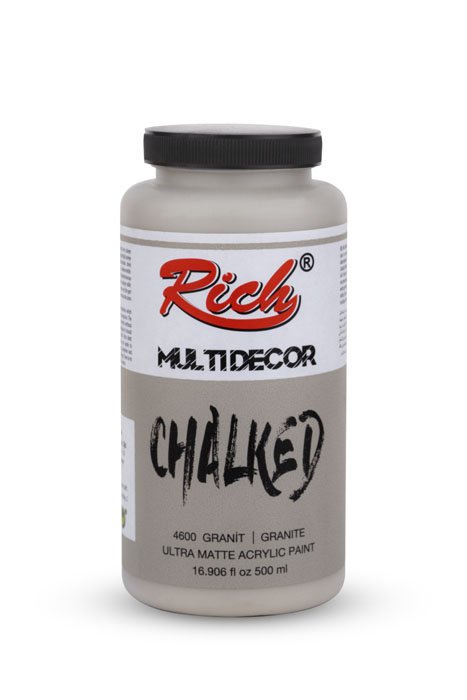 Rich Multi-Decor Chalked series are water-based, odorless paints that can be applied on every surface for decorative purposes. They give a silky, matte appearance on the applied surface. It is applied directly without dilution. It should be shaken for 1 min. before each use. The colors can be intermixed. Due to its high-pigment composition, it ensures a clarity in 2-3 coats at an average. It leaves no brush marks behind. It is suitable for application with rollers. When renovating your furniture with Multi-Decor Chalked paints, there is no need for sandpaper, surface preparation before the application, or applying another product. Along with its rich color range, it is available in 4 different volumes; namely 100cc/250cc/500cc/1250cc.