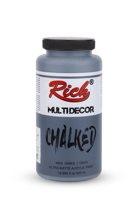 Rich Multi-Decor Chalked series are water-based, odorless paints that can be applied on every surface for decorative purposes. They give a silky, matte appearance on the applied surface. It is applied directly without dilution. It should be shaken for 1 min. before each use. The colors can be intermixed. Due to its high-pigment composition, it ensures a clarity in 2-3 coats at an average. It leaves no brush marks behind. It is suitable for application with rollers. When renovating your furniture with Multi-Decor Chalked paints, there is no need for sandpaper, surface preparation before the application, or applying another product. Along with its rich color range, it is available in 4 different volumes; namely 100cc/250cc/500cc/1250cc.