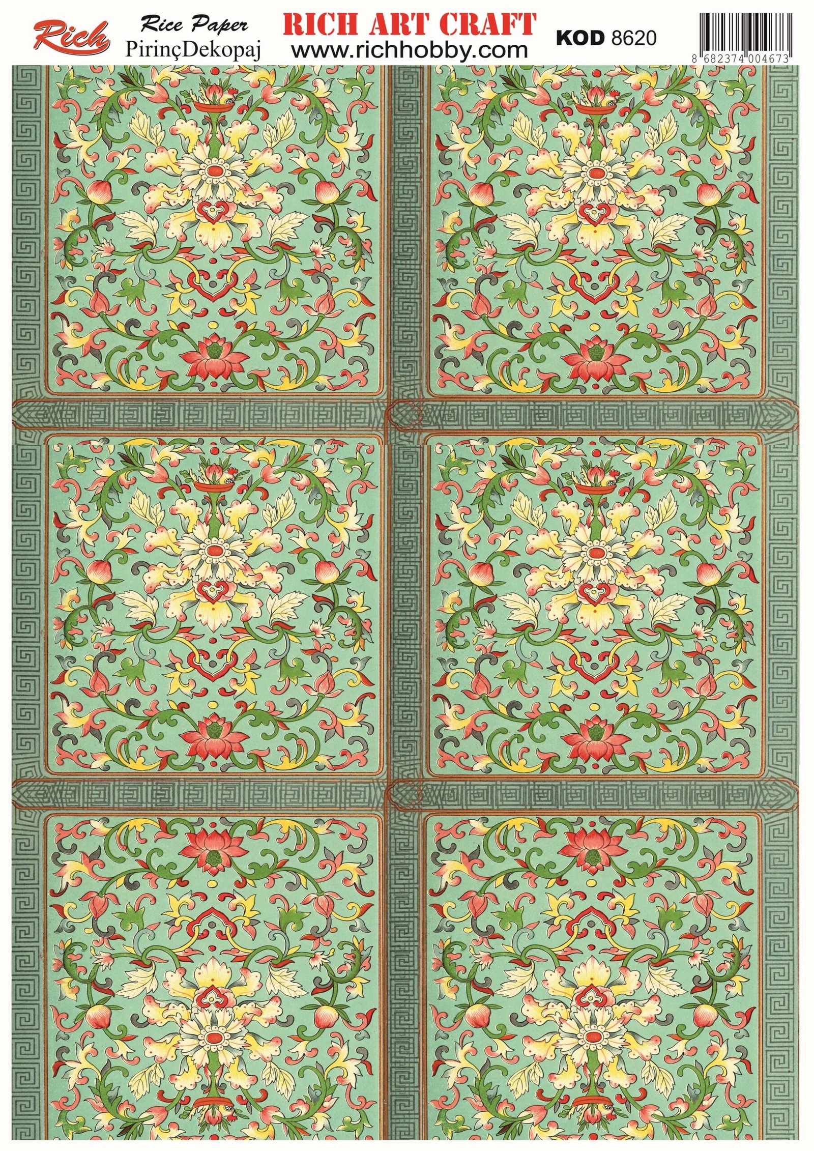 The designs that are printed on the special decoupage paper sheets are ideal to use in decoupage works. With Rich Magic Decoupage Glue, you can easily stick it to the surface you want and apply paints, relief pastes, foils, and varnishes on those. For other decoupage models, please visit our decoupage paper web pages.