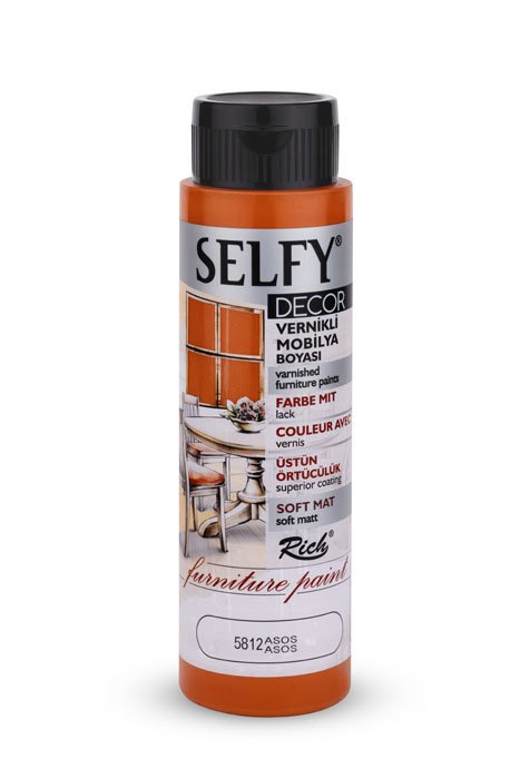 Rich Selfy Decor is for decorative purposes and they are water-based paints with intrinsic varnish that can be applied on wooden, varnished, and lacquered furniture surfaces. They give a sıft matte appearance to the applied surface. The net appearance is achieved after an average of 2-3 coats depending on the surface. No dilution is needed. It is ready for direct use. The colors can be intermixed. It is suitable for application with rollers and brushes. When painting varnished surfaces and furniture makeover products with Selfy Decor, there is no need for preparation or sanding. It is sufficient that the surface to be painted is clean and dry. One must wait at least 4-6 hours between the coats and the product should be shaken before each use. Full drying time for the surface colored with Selfy Decor is 4-5 days. Along with a variety of 38 colors, it is available in 3 different volumes; namely 240cc/500cc/1250cc. It complies with CE and EN71 norms.