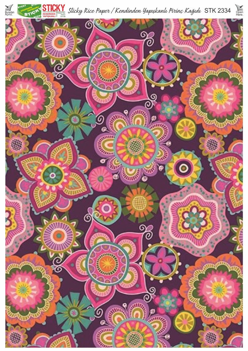 Scky Rice Paper (Self-Adhesive Rice Paper) It is printed on textured and thin paper that made from rice straw and is used for decoupage works. With its selfadhesive feature, it does not require glue. You can easily paste it on the area you want and apply painng, relief, foil and varnish on it. You can visit our web page for other Scky models