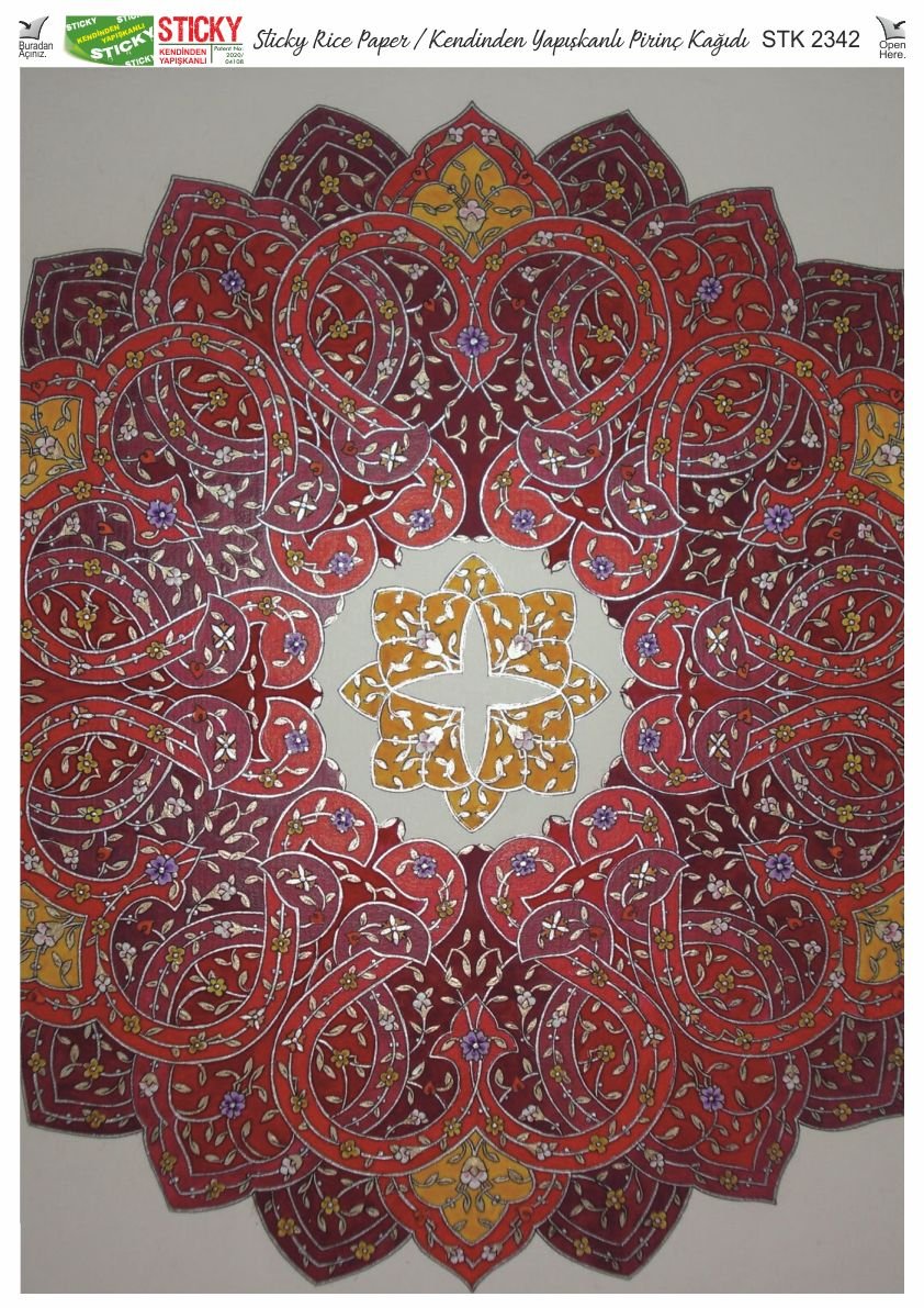 Scky Rice Paper (Self-Adhesive Rice Paper) It is printed on textured and thin paper that made from rice straw and is used for decoupage works. With its selfadhesive feature, it does not require glue. You can easily paste it on the area you want and apply painng, relief, foil and varnish on it. You can visit our web page for other Scky models
