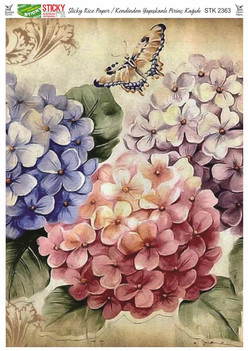 Scky Rice Paper (Self-Adhesive Rice Paper) It is printed on textured and thin paper that made from rice straw and is used for decoupage works. With its selfadhesive feature, it does not require glue. You can easily paste it on the area you want and apply painng, relief, foil and varnish on it. You can visit our web page for other Scky models