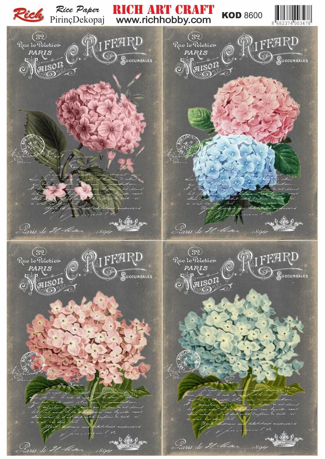The designs that are printed on the special decoupage paper sheets are ideal to use in decoupage works. With Rich Magic Decoupage Glue, you can easily stick it to the surface you want and apply paints, relief pastes, foils, and varnishes on those. For other decoupage models, please visit our decoupage paper web pages.