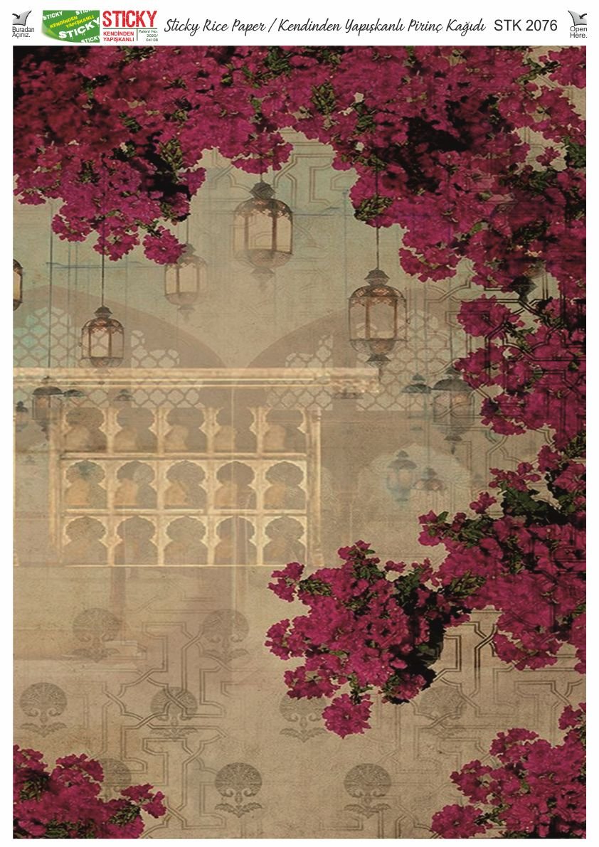 Scky Rice Paper (Self-Adhesive Rice Paper) It is printed on textured and thin paper that made from rice straw and is used for decoupage works. With its selfadhesive feature, it does not require glue. You can easily paste it on the area you want and apply painng, relief, foil and varnish on it. You can visit our web page for other Scky models