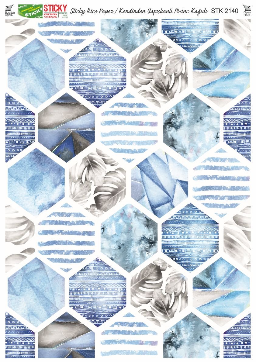 Scky Rice Paper (Self-Adhesive Rice Paper) It is printed on textured and thin paper that made from rice straw and is used for decoupage works. With its selfadhesive feature, it does not require glue. You can easily paste it on the area you want and apply painng, relief, foil and varnish on it. You can visit our web page for other Scky models