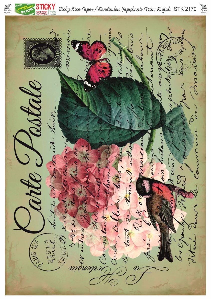 Scky Rice Paper (Self-Adhesive Rice Paper) It is printed on textured and thin paper that made from rice straw and is used for decoupage works. With its selfadhesive feature, it does not require glue. You can easily paste it on the area you want and apply painng, relief, foil and varnish on it. You can visit our web page for other Scky models
