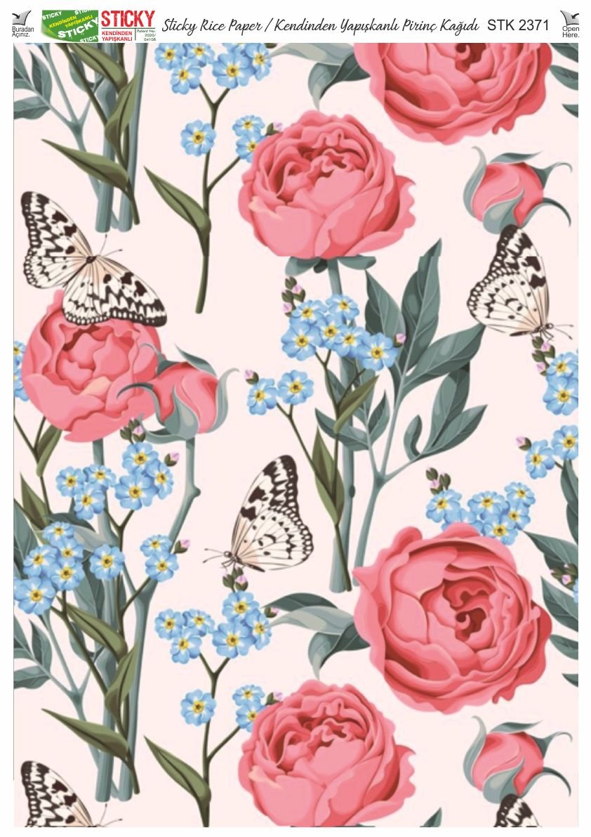 Scky Rice Paper (Self-Adhesive Rice Paper) It is printed on textured and thin paper that made from rice straw and is used for decoupage works. With its selfadhesive feature, it does not require glue. You can easily paste it on the area you want and apply painng, relief, foil and varnish on it. You can visit our web page for other Scky models