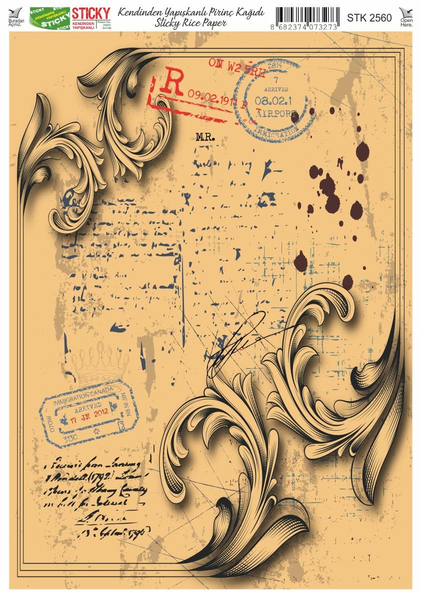 Scky Rice Paper (Self-Adhesive Rice Paper) It is printed on textured and thin paper that made from rice straw and is used for decoupage works. With its selfadhesive feature, it does not require glue. You can easily paste it on the area you want and apply painng, relief, foil and varnish on it. You can visit our web page for other Scky models
