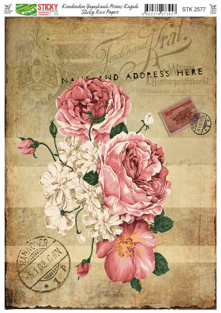 Scky Rice Paper (Self-Adhesive Rice Paper) It is printed on textured and thin paper that made from rice straw and is used for decoupage works. With its selfadhesive feature, it does not require glue. You can easily paste it on the area you want and apply painng, relief, foil and varnish on it. You can visit our web page for other Scky models