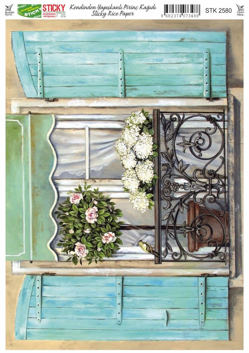 Scky Rice Paper (Self-Adhesive Rice Paper) It is printed on textured and thin paper that made from rice straw and is used for decoupage works. With its selfadhesive feature, it does not require glue. You can easily paste it on the area you want and apply painng, relief, foil and varnish on it. You can visit our web page for other Scky models