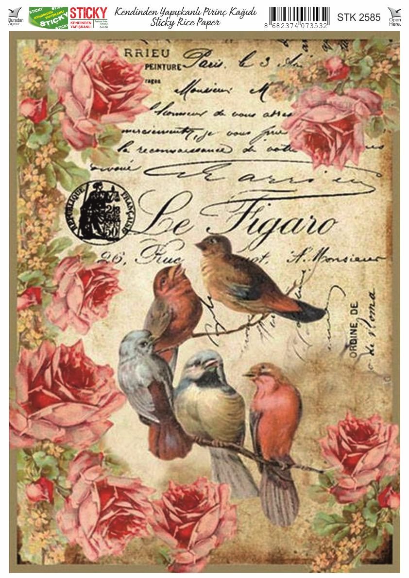 Scky Rice Paper (Self-Adhesive Rice Paper) It is printed on textured and thin paper that made from rice straw and is used for decoupage works. With its selfadhesive feature, it does not require glue. You can easily paste it on the area you want and apply painng, relief, foil and varnish on it. You can visit our web page for other Scky models