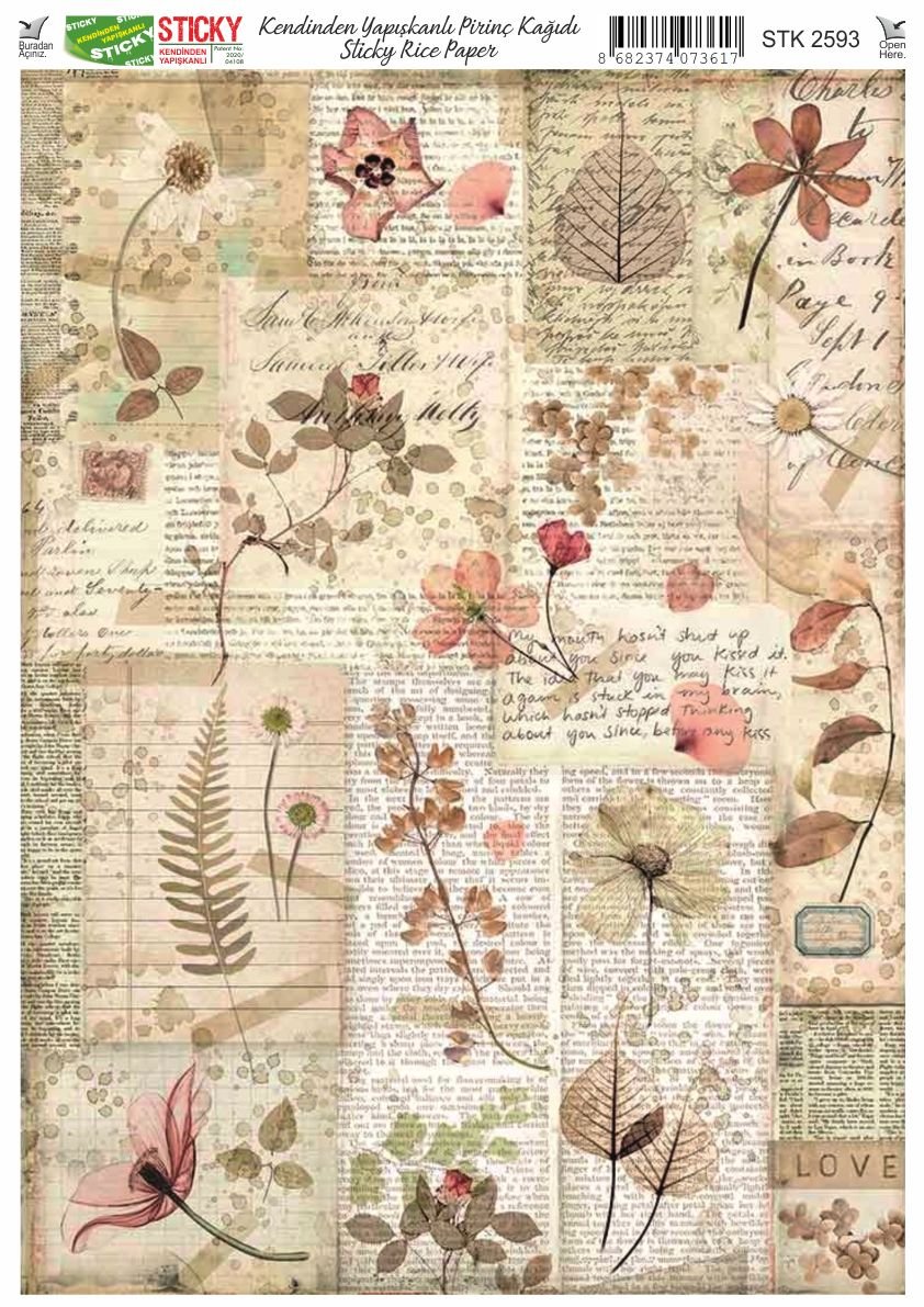 Scky Rice Paper (Self-Adhesive Rice Paper) It is printed on textured and thin paper that made from rice straw and is used for decoupage works. With its selfadhesive feature, it does not require glue. You can easily paste it on the area you want and apply painng, relief, foil and varnish on it. You can visit our web page for other Scky models