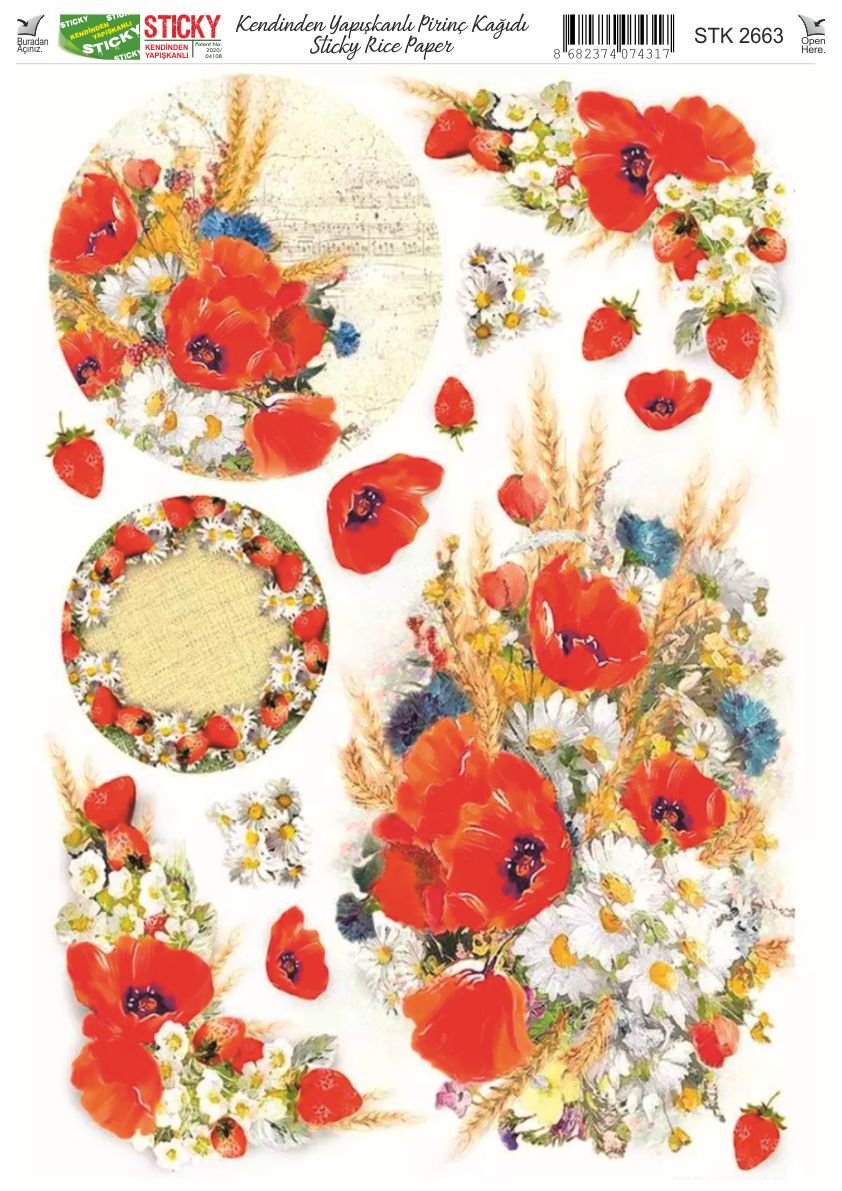 Scky Rice Paper (Self-Adhesive Rice Paper) It is printed on textured and thin paper that made from rice straw and is used for decoupage works. With its selfadhesive feature, it does not require glue. You can easily paste it on the area you want and apply painng, relief, foil and varnish on it. You can visit our web page for other Scky models