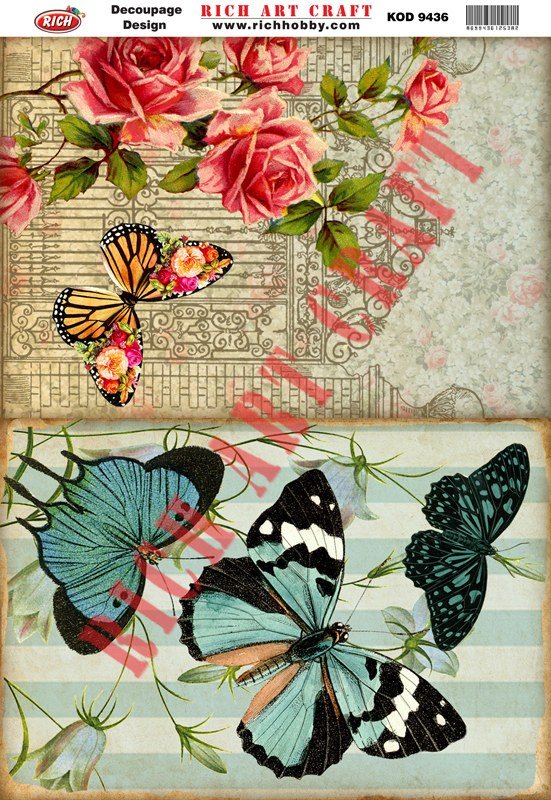The designs that are printed on the special decoupage paper sheets are ideal to use in decoupage works. With Rich Magic Decoupage Glue, you can easily stick it to the surface you want and apply paints, relief pastes, foils, and varnishes on those. For other decoupage models, please visit our decoupage paper web pages.