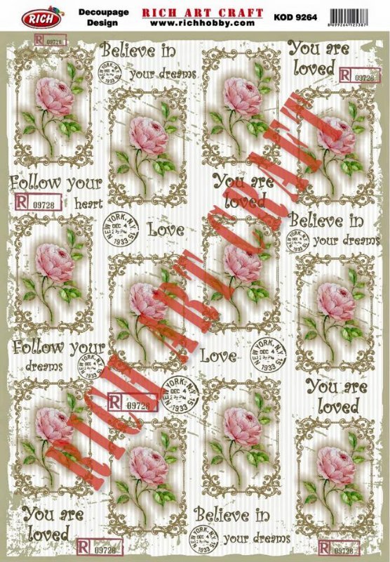 The designs that are printed on the special decoupage paper sheets are ideal to use in decoupage works. With Rich Magic Decoupage Glue, you can easily stick it to the surface you want and apply paints, relief pastes, foils, and varnishes on those. For other decoupage models, please visit our decoupage paper web pages.