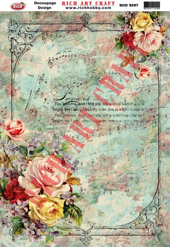 The designs that are printed on the special decoupage paper sheets are ideal to use in decoupage works. With Rich Magic Decoupage Glue, you can easily stick it to the surface you want and apply paints, relief pastes, foils, and varnishes on those. For other decoupage models, please visit our decoupage paper web pages.