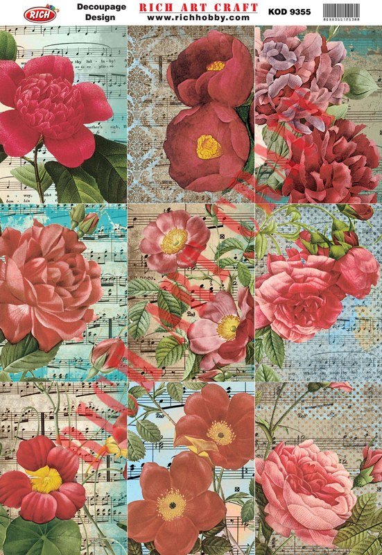 The designs that are printed on the special decoupage paper sheets are ideal to use in decoupage works. With Rich Magic Decoupage Glue, you can easily stick it to the surface you want and apply paints, relief pastes, foils, and varnishes on those. For other decoupage models, please visit our decoupage paper web pages.