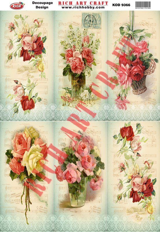 The designs that are printed on the special decoupage paper sheets are ideal to use in decoupage works. With Rich Magic Decoupage Glue, you can easily stick it to the surface you want and apply paints, relief pastes, foils, and varnishes on those. For other decoupage models, please visit our decoupage paper web pages.