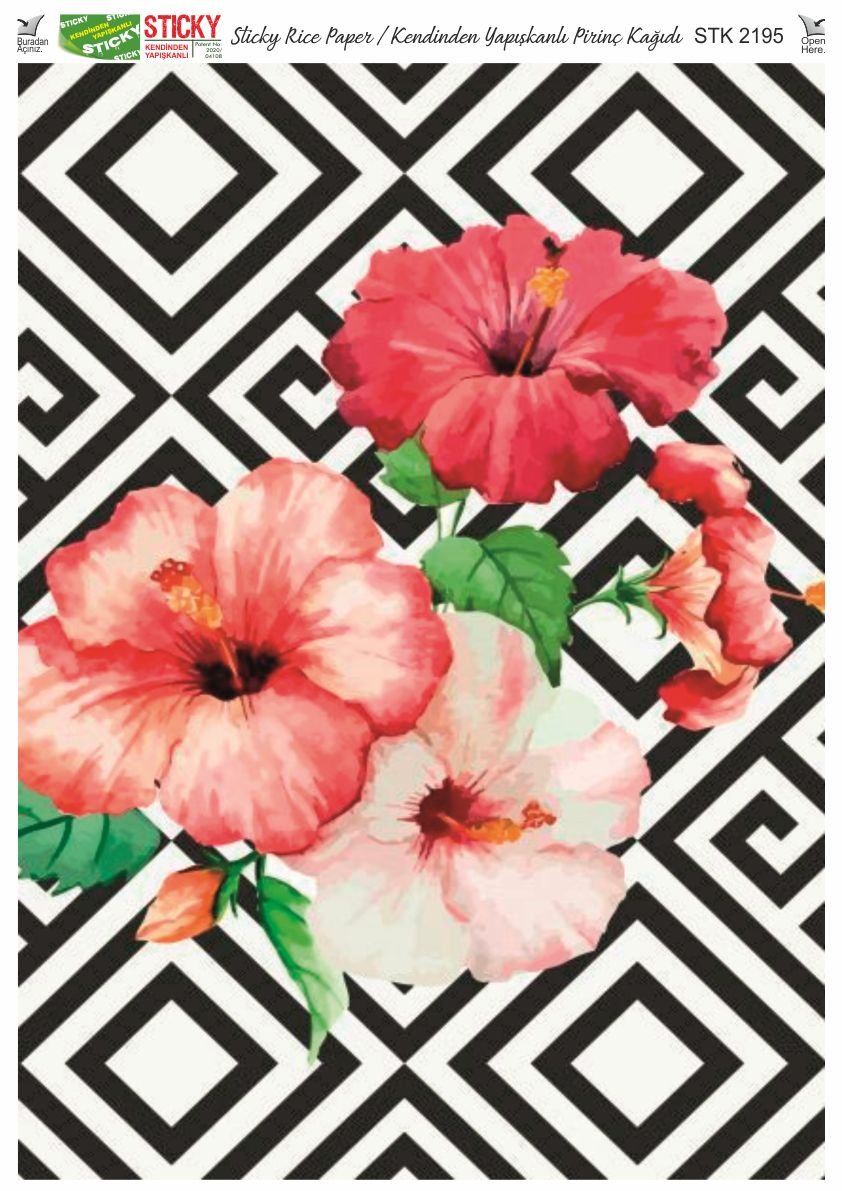 Scky Rice Paper (Self-Adhesive Rice Paper) It is printed on textured and thin paper that made from rice straw and is used for decoupage works. With its selfadhesive feature, it does not require glue. You can easily paste it on the area you want and apply painng, relief, foil and varnish on it. You can visit our web page for other Scky models
