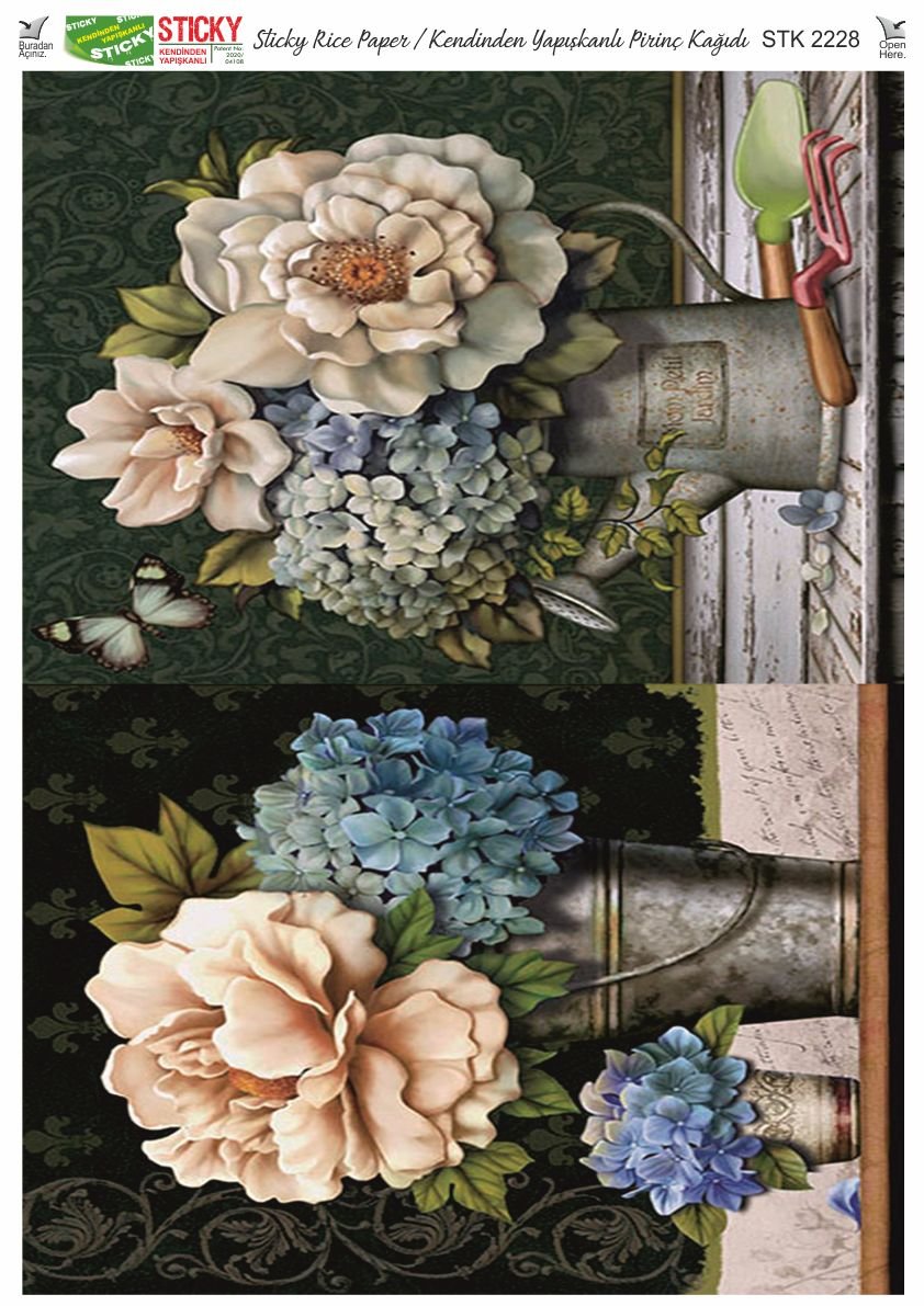 Scky Rice Paper (Self-Adhesive Rice Paper) It is printed on textured and thin paper that made from rice straw and is used for decoupage works. With its selfadhesive feature, it does not require glue. You can easily paste it on the area you want and apply painng, relief, foil and varnish on it. You can visit our web page for other Scky models